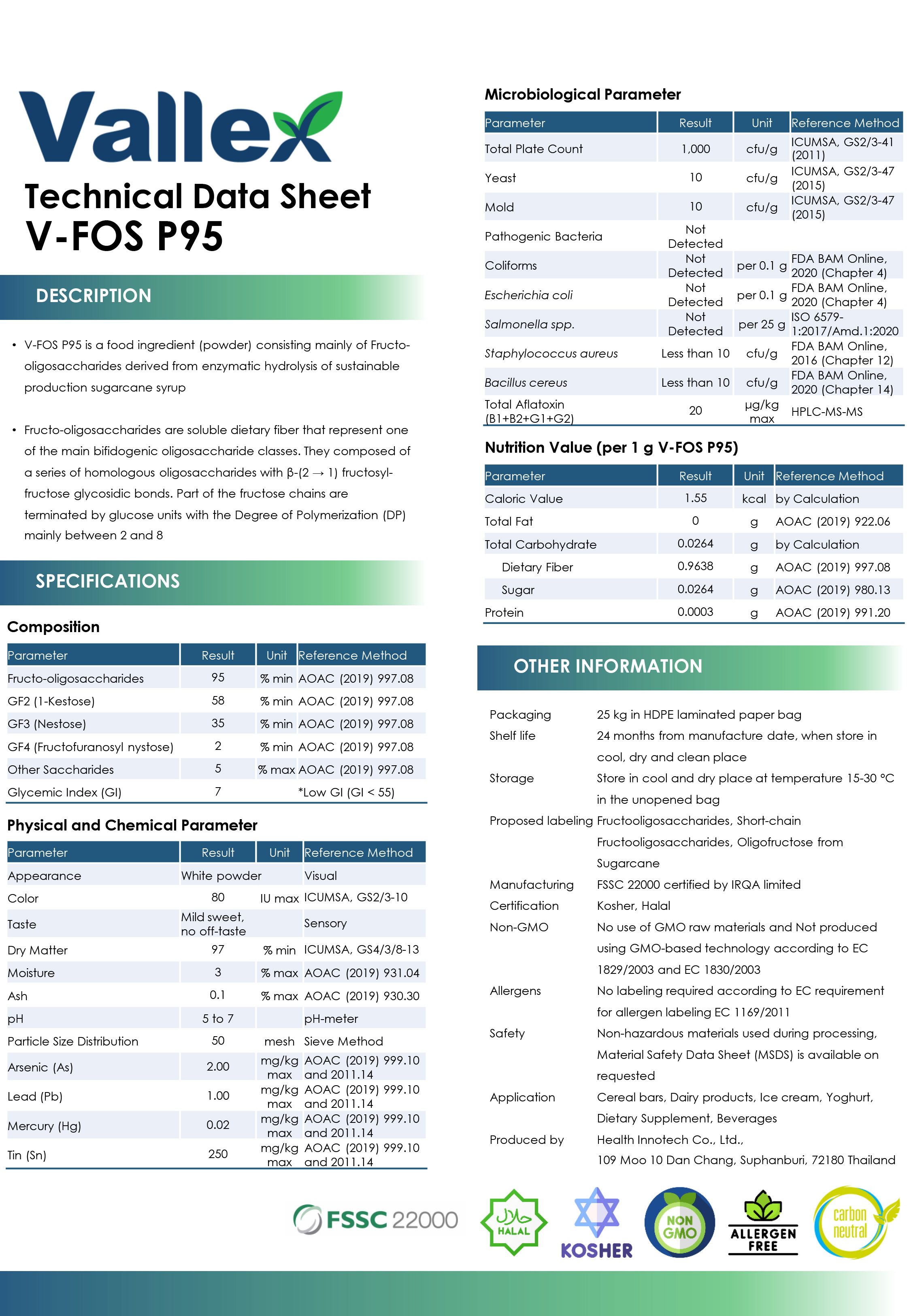 V-FOS P95 is a food ingredient ( powder) consisting mainly of Fructo